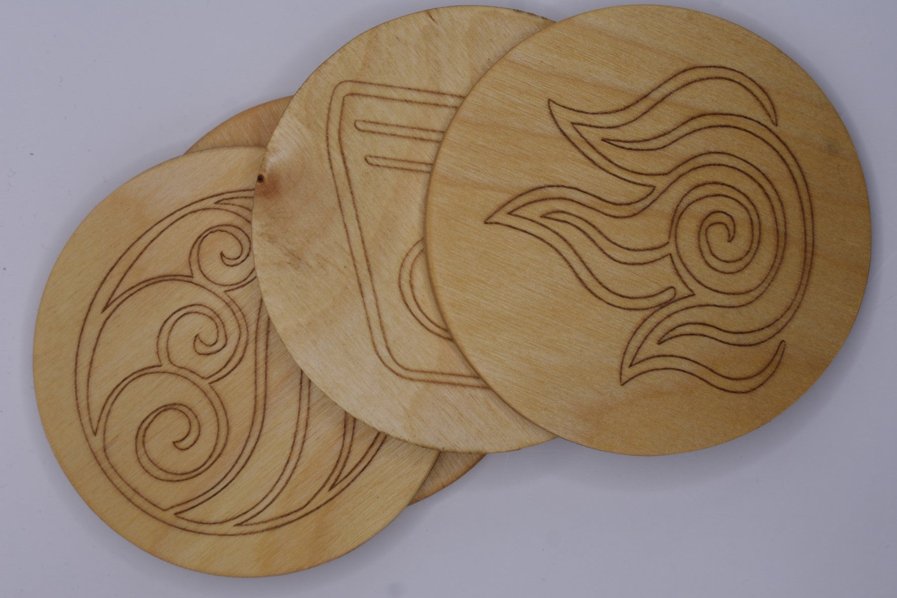 Minimalistische houten onderzetters – de vier elementen
